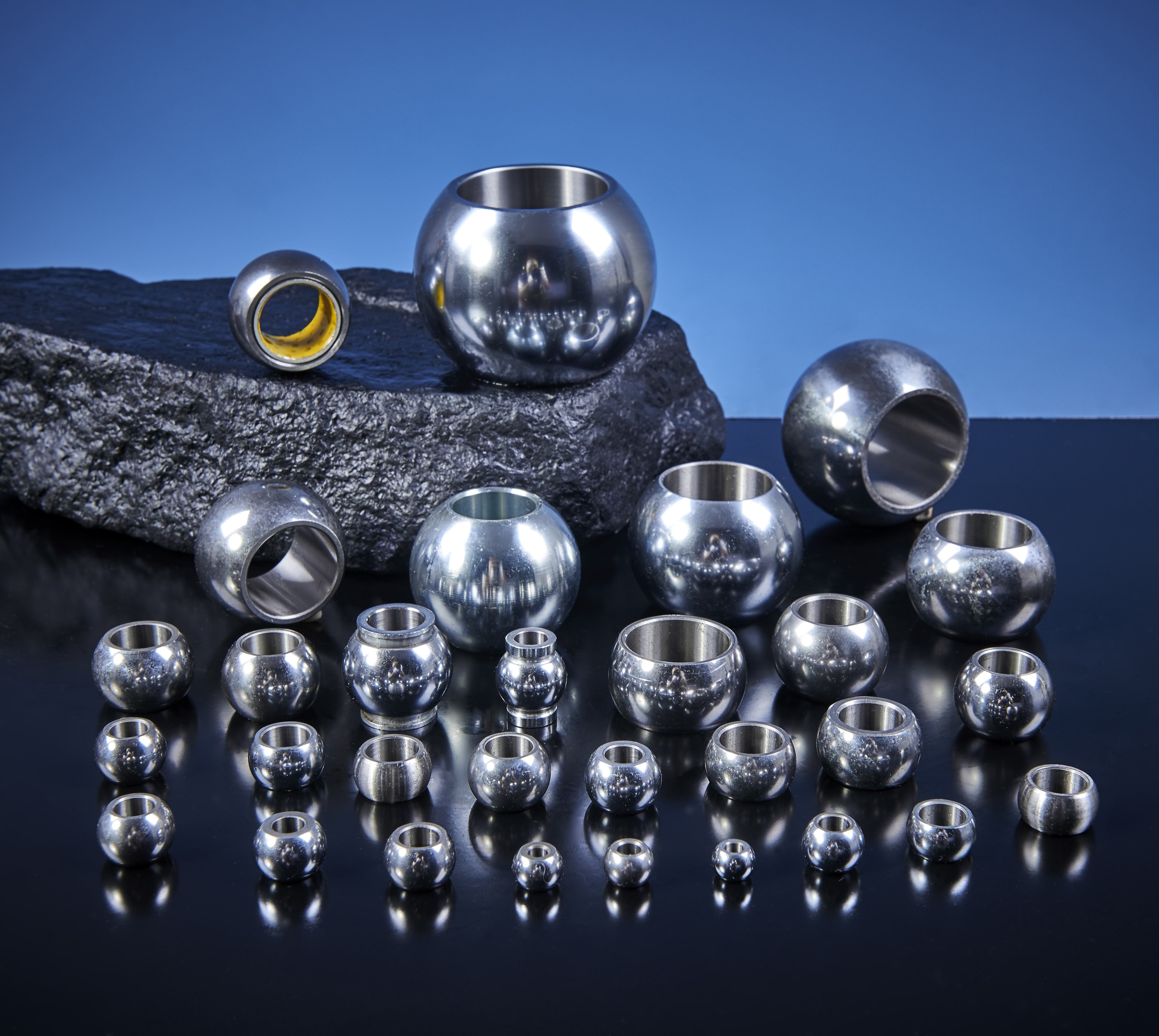 ボールジョイントは、1つの軸について約360°回転し、他の2つの軸でより制限された回転を提供します。これらの軸の典型的な可動域は、約+/- 15°です。ロッドエンドは、北米のハイムフィッティングと呼ばれることもあり、ヨーロッパではバラの備品と呼ばれます。